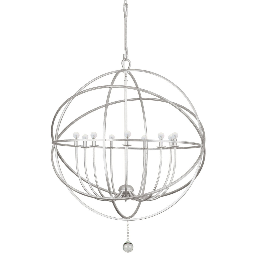 Inspired by artwork at the MoMA in New York, the Solaris Collection is the perfect marriage of form and function. This sculptural, sphere-shaped wrought chandelier is finished in a olde silver, and is draped in beaded swags. With it's clean, contemporary styling, Solaris lights look great in any room of the home and blend with a variety of styles -- traditional, contemporary or transitional. Solaris lights have been featured in farmhouses, urban lofts, industrial designs and contemporary settings.
