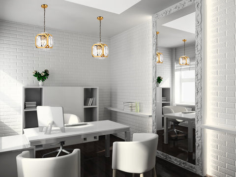 The Juno pendant in a light antique brass finish displays geometric excellence and a wonderous style. The light is encapsulated with a cube-like shade that is both open and closed at the same time as faceted clear bulbous glass covers the openings and minimally obscures the light that shines through. Add contemporary style to your space and amaze your guests with this pendant.