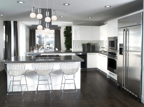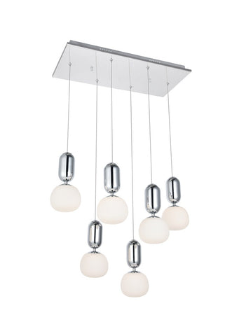 The Lea 6-light pendant in a chrome finish is a bulbous affair. In modern whimsy, chrome capsules accent the white spherical shades, dimming the lights softly as they shine through in unaffected brilliance. With contemporary style and a luxurious charm, this pendant will amaze and fascinate all.