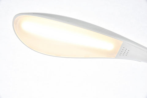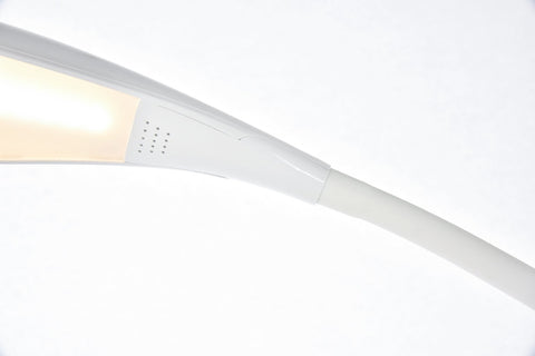 Sleek LED floor lamp with adjustable arm. Lamp is 4.5 watts at 480 lumens, soft lighting with a warm temperature color of 3000K. Equipped with a foot switch to power the floor lamp .