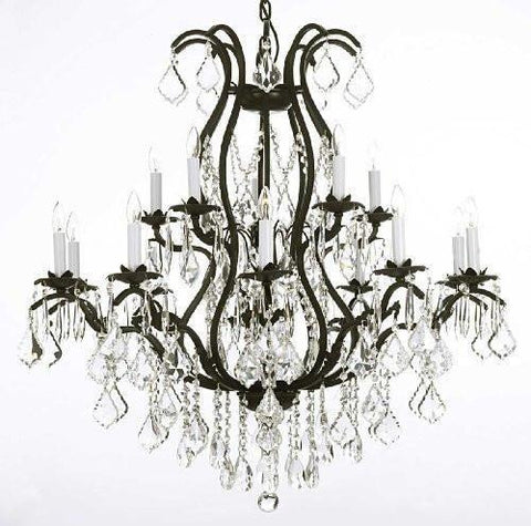 A Great European Tradition. Nothing is quite as elegant as the fine crystal chandeliers that gave sparkle to brilliant evenings at palaces and manor houses across Europe. This beautifully unique version from the Versailles Collection has 100% Crystal that capture and brilliantly reflect the light of the candle bulbs. The frame is all wrought iron, adding the finishing touch to a wonderful fixture. The timeless elegance of this chandelier is sure to lend a special atmosphere anywhere its placed! Please note this item requires assembly. This item comes with 18 inches of chain. size: H36" x W36" 15 LIGHTS.