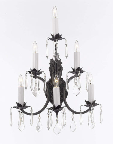 A Great European Tradition. Nothing is quite as elegant as the fine crystal wall sconces that gave sparkle to brilliant evenings at palaces and manor houses across Europe. This beautifully unique wall sconce from the Versailles Collection has 100% Crystal that capture and brilliantly reflect the light of the candle bulbs. The frame is all wrought iron, adding the finishing touch to a wonderful fixture. The timeless elegance of this chandelier is sure to lend a special atmosphere anywhere its placed!